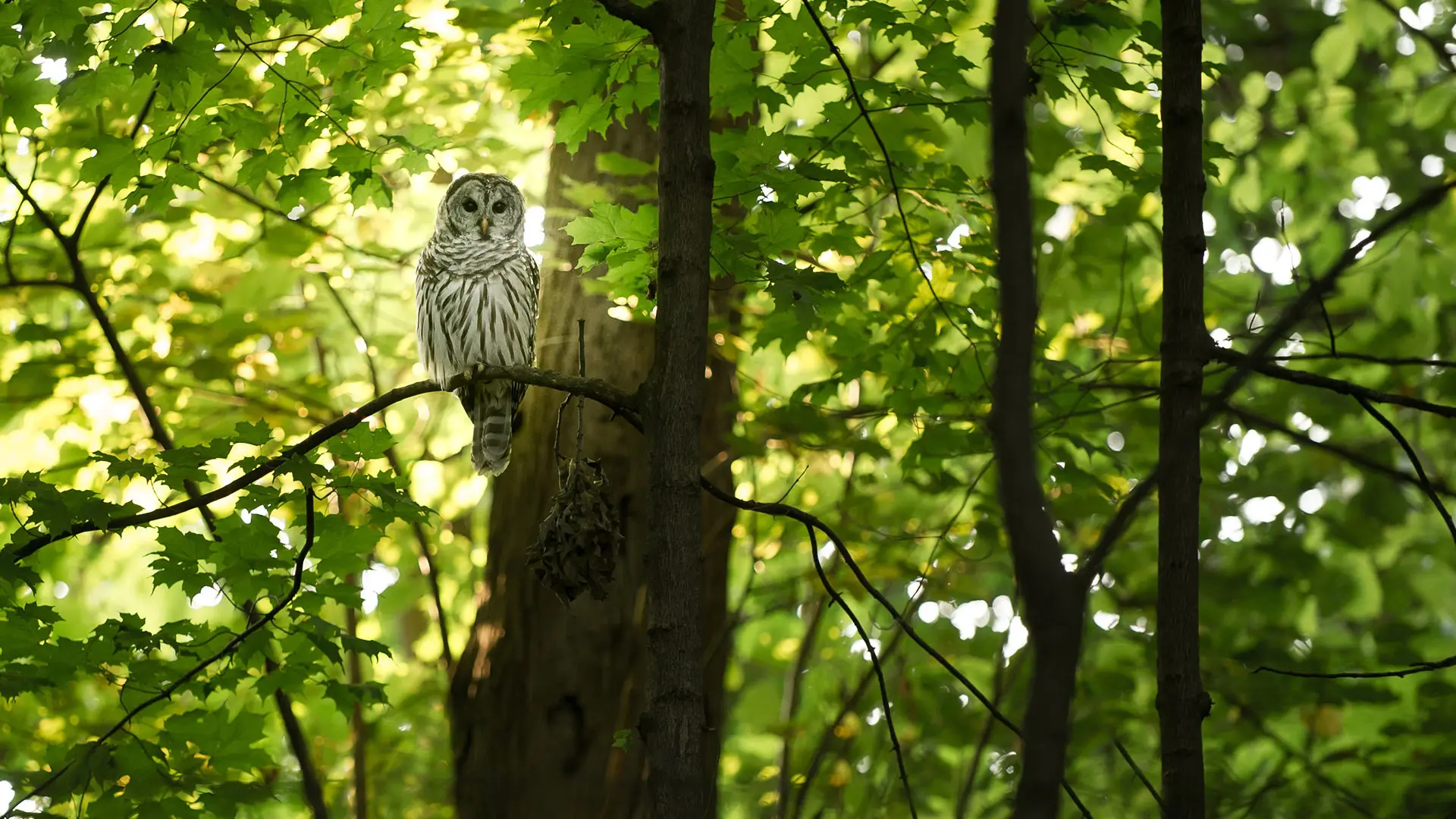 Luat prin surprindere, bietul arici se dezechilibră, gata-gata să cadă. Ewa sări și ea, aproape să dea cu capul de o creangă. Cu un fâlfâit de aripi, o bufniță se așeză pe o creangă aproape de arici.